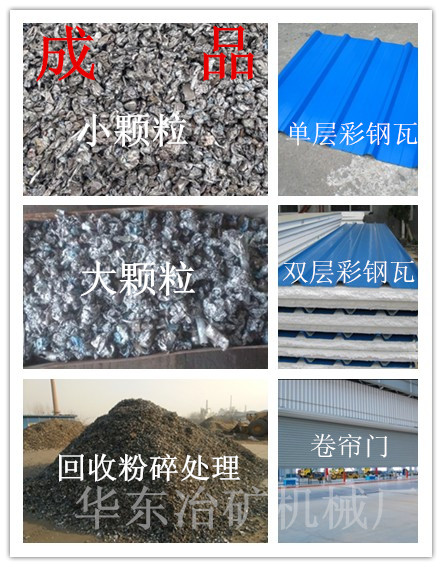 金屬彩鋼瓦破(pò)碎粉碎後的物料(liào)光亮幹淨,便於(yú)運輸,減少(shǎo)了運輸成本,鋼廠煉鋼時收得率提高(gāo),經破碎粉碎後(hòu)的廢金屬材料,銷路很好,利潤空間提高,練出的鋼水與投入的廢鋼比例高(產出比(bǐ)高),爐內的化(huà)學成分穩(wěn)定、受熱均勻、鋼水重磷、硫含量低、加料密度增加,加料次數減少,爐(lú)內耐火材料襯裏壽命延長,冶煉時空氣汙(wū)染減少、操作容易、耗能降低、利潤空間大(dà)。